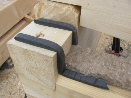 Pro mezitrámovou izolaci při výstavbě kanadských srubů jsme vyvinuli speciální těsnící pásy. Dlouhodobě zajišťují vzduchotěsné utěsnění trámů v konstrukci dřevostavby, a tak snižují tepelné ztráty celé budovy.