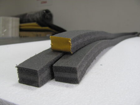 Das Dichtungs-Kombi-Profil besteht aus zwei Arten von Schaumstoffmaterial. Die äußeren Schichten des Profils sind härter, während die innere Schicht aus leicht komprimierbarem PE-SOFT-Material besteht, das nach der Entlastung in seine ursprüngliche Form und Dicke zurückkehrt.